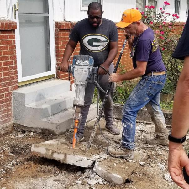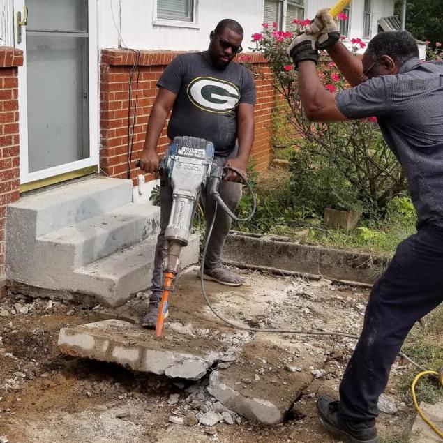 The job. Demoing about 200 square feet of concrete sidewalks around the home and disposing of it. Prep and create form for new concrete and pour and finish it.